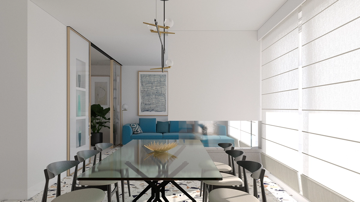 All the spaces in the living area are designed to draw the observer out of the closed environment, towards the sea. As such, the balcony also becomes part of the apartment, as an extension of the indoor living area, with changing colors and moods in harmony with the passing of the days and seasons.