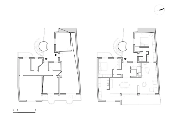 The sleeping area is filtered by a study space, strongly desired by the client, who dedicates a good part of his private life to reading. Hence, to avoid distractions, the room not in direct contact with the outside, but imagined as a hybrid between the "public" and "private" areas, where the user can find his dimension and focus on his passions. The finishes and organization of this space also allows it to become part of the living area, by opening a sliding wall.