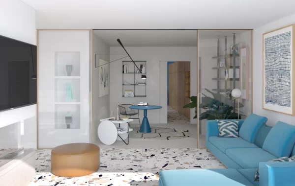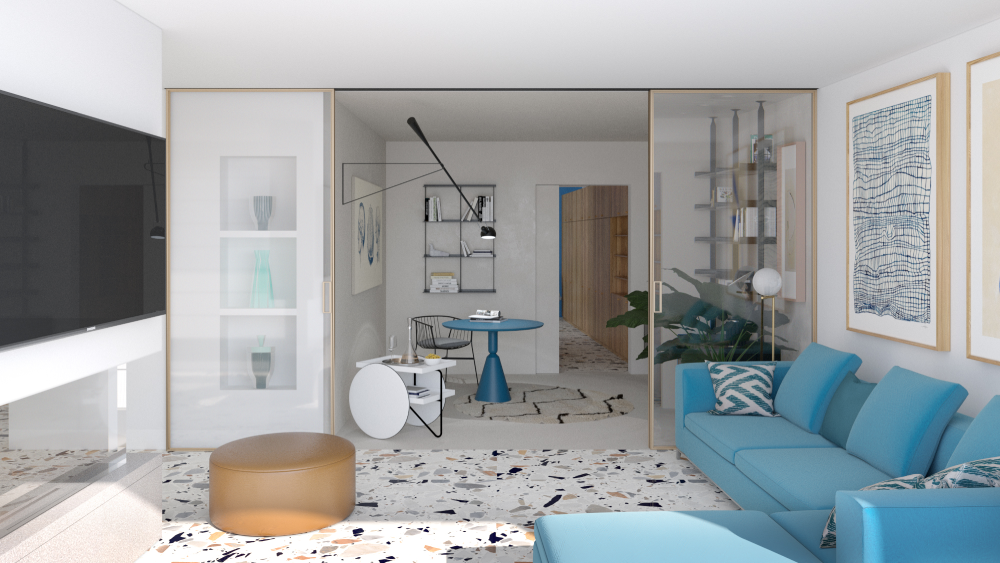 All the spaces in the living area are designed to draw the observer out of the closed environment, towards the sea. As such, the balcony also becomes part of the apartment, as an extension of the indoor living area, with changing colors and moods in harmony with the passing of the days and seasons.