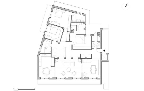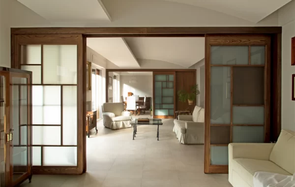 The project is shaped starting from the specific requests of the customers: adding a bedroom and two bathrooms without losing space in the living area, used for representative purposes. This was achieved by redistributing the arrangement of the private rooms. Most of all, however, focus was set on the living area. Existing partitions were eliminated to create a dynamic space with sliding panels allowing to unify or separate functional areas: as the kitchen, the living room and the studio.