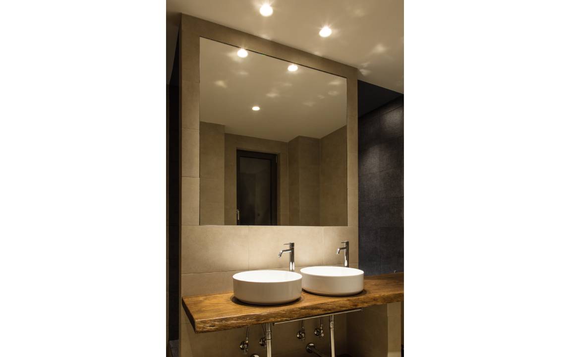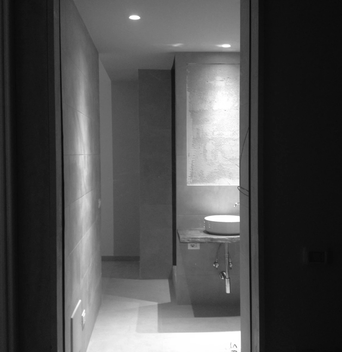 The wooden paneling system was specifically designed to charachterise the look of the space and allows a division of the apartment into a private and a public area, isolating in one easy move the studio and the guests’ bathroom.