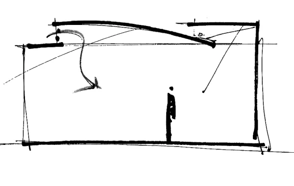 The ceiling was shaped to conceal the conditioning plant and redirect the natural and artificial light to maximise the optical comfort of the interiors.