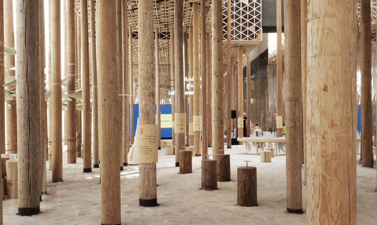 Il progetto sviluppato da Alessandro Ripellino Arkitekter, lo Studio Adrien Gardère e Luigi Pardo Architetti trasforma il simbolismo della foresta in architettura e mostra, per il padiglione svedese di EXPO Dubai 2020. Il dinamismo architettonico del padiglione nasce lungo la libera fruizione della mostra al piano terra come una passeggiata trai tronchi d’albero, mentre i piani superiori racchiudono gli spaziprivati in capanne sugli alberi. I diversi tipi di spazi che ospita il padiglione sono tutti ispirati alla metafora della foresta con le sue radure, infittimenti, capanne e tettoie.