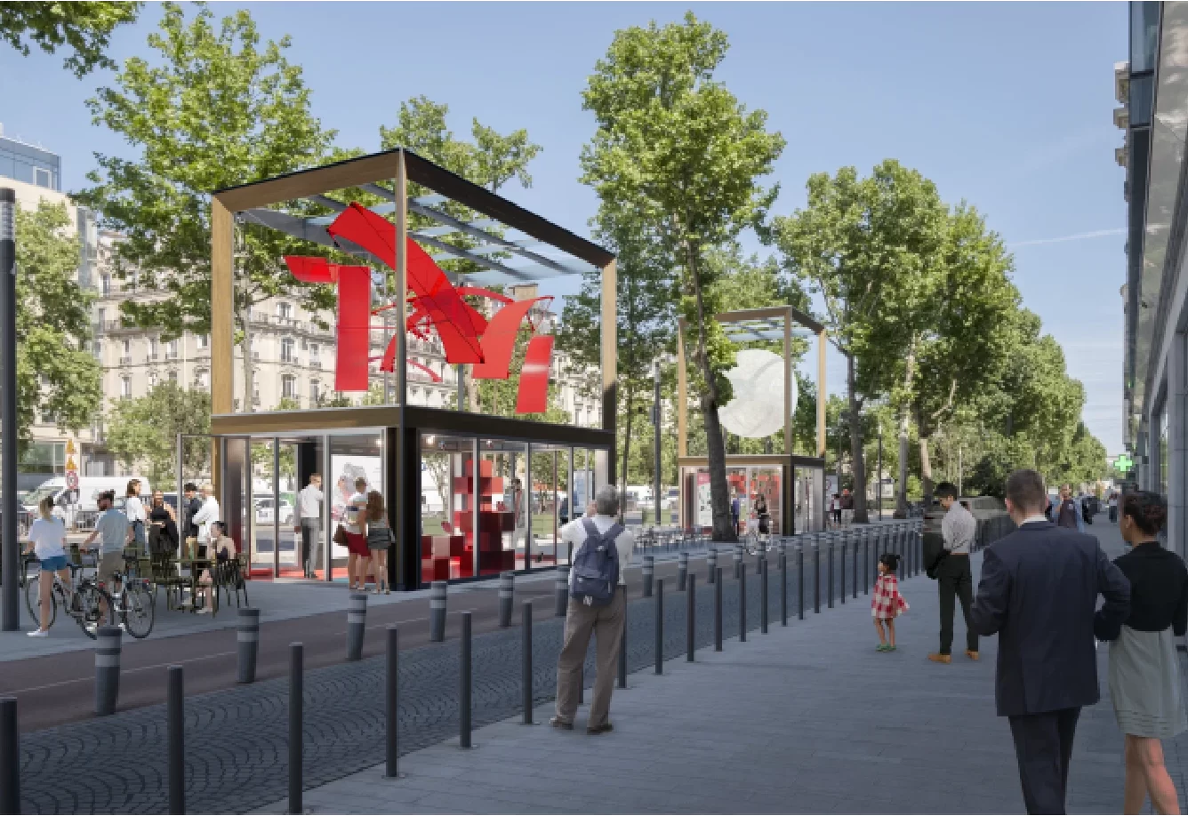 Luigi Pardo Architetti insieme ad Atelier Cortile presentano un'unica architetturadeclinata in 2 diverse altezze trasformabile all'infinito grazie alla combinazione di 3 variabili: l'involucro, la disposizione interna al livello strada e l'installazione all’interno del telaio aperto al livello 1; Le istallazioni possono avere una specificafunzione (ambientale e/o segnaletica) o essere oggetto di ciclici interventi artistici che portano al quartiere un attrazione continua anche per i non residenti a Neuilly.